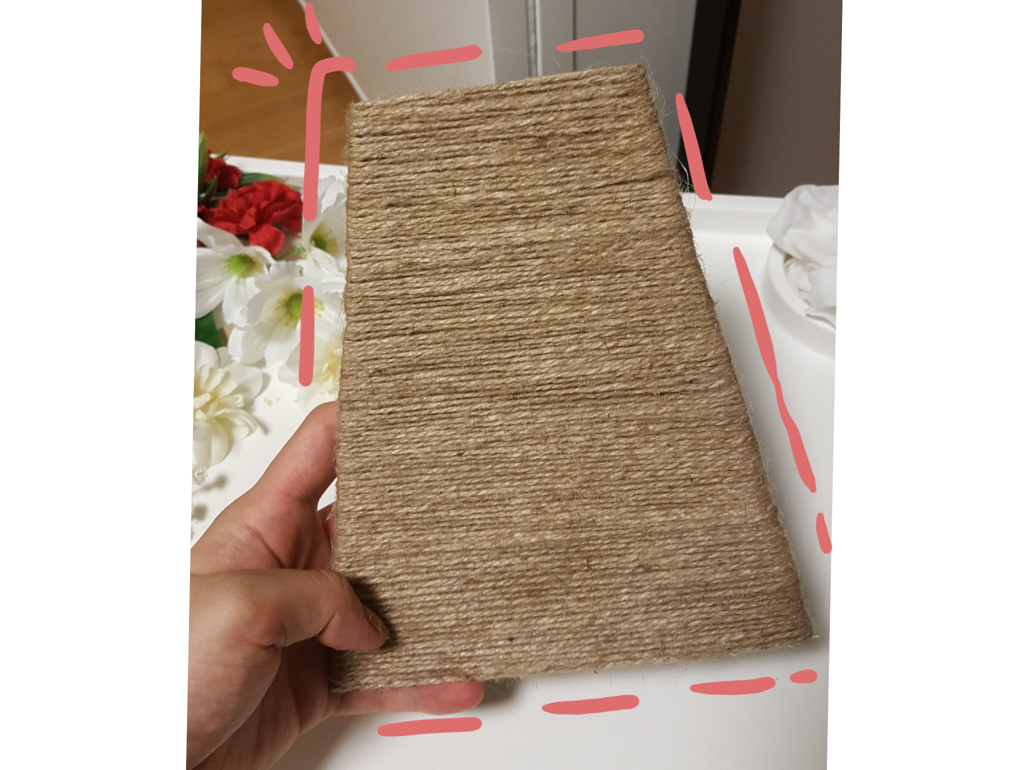 추가적으로 갈색 노끈을 감아주었답니다